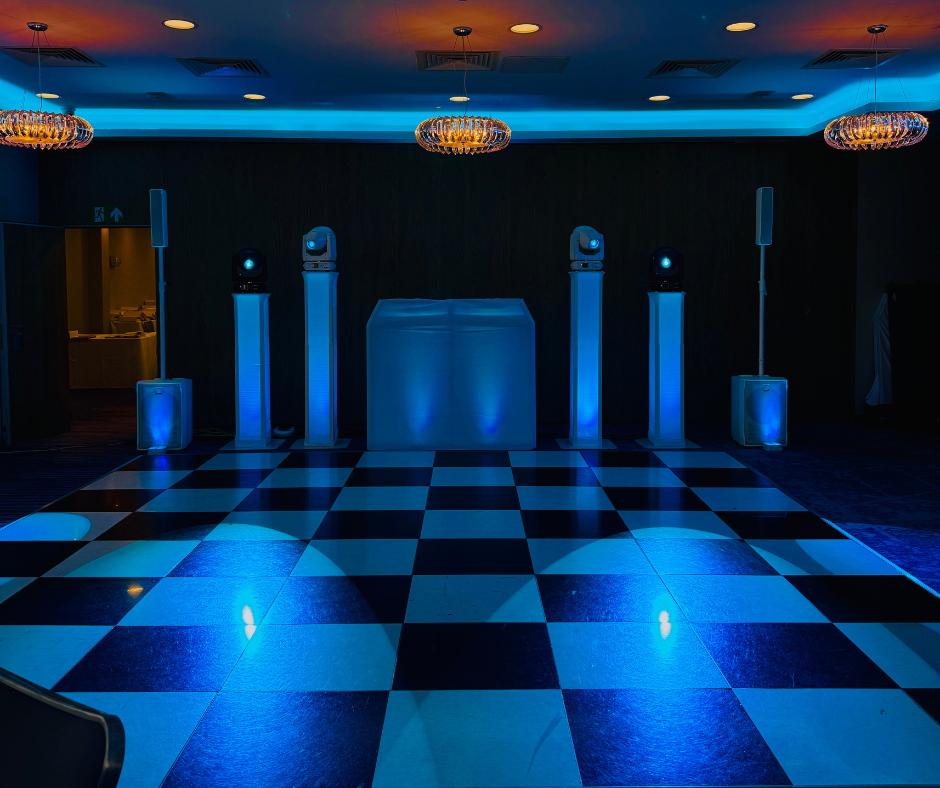 A sleek, modern setup for couples who want a real wow factor and a dance floor that becomes the centre of the celebration. Perfect for larger venues or any space needing a polished, high-end atmosphere.